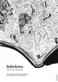 Ob mit Tusche, Aquarell oder Kaffee – wenn Michael Blümel die Zeichenfeder schwingt, dann fliegen auch schon mal die Fetzen, so der Grafiker und Illustrator in einem Interview zu seinen mitunter spontanen, eruptiven Reaktionen auf seine Lektüren. Denn im Zentrum von Blümels kreativer Arbeit steht die Literatur. Er schreibt Werke der Weltliteratur mit seiner Zeichenfeder und anderen unkonventionellen Materialien weiter, interpretiert und vertieft auf bildkünstlerische Weise. So setzte er schon Texte von Paul Auster, Ingeborg Bachmann, José Saramago und Christa Wolf ins Bild. Und: Annette von Droste-Hülshoff.